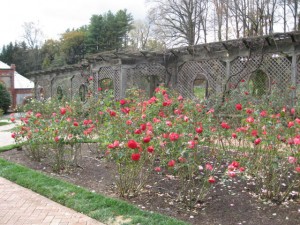 The Rose Garden was full of flowers in spite of the black spot that had left the plants with few leaves.