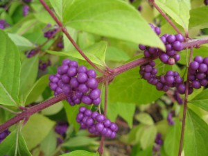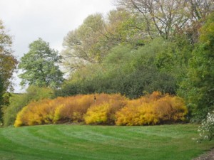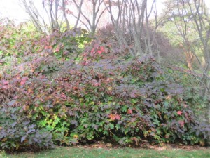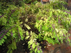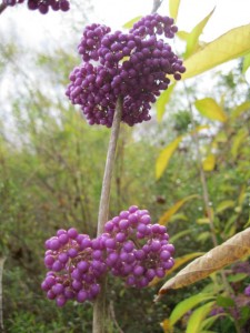 In the Shrub Garden many trees and shrubs were donning their fall attire. The beautyberry bush was turning yellow.
