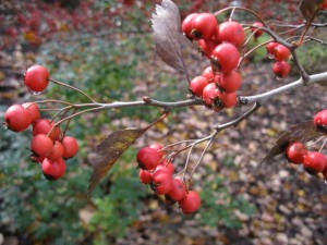 Its fruit were bright red and still hanging on even though most of the leaves had fallen.