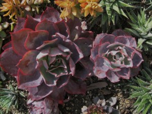 The round leaves of this kalanchoe give it the common name Paddle Plant. The leaves are medium green and edged with red during most of the year but become redder during the winter.