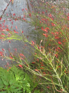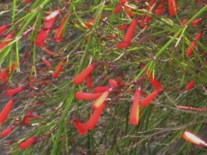 The scarlet tubular flowers are about 1 inch long and look like little firecrackers, giving the plant another common name, firecracker plant.
