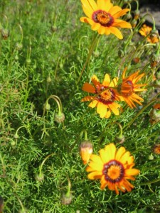 A south African native, sunshine daisy has fern-like yellow-green foliage.