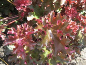 The rose growing on this umbrella shaped trellis were not blooming yet but they were beginning to leaf out. In the mean time, the flax plants give the area color with tall dominant leaves.