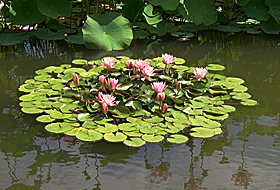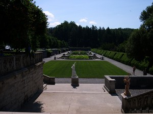 A further climb up the hillside towards the house brings you to the Library Terrace that offers a fabulous view of the Italian Garden. This garden was designed in the style of 16th century French gardens but derives its name from the many Italian style statues that decorate the garden. Five pools create the setting for the display of water plants.