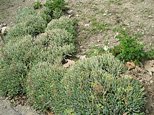 Less showy but very interesting is Crucifixion Thorn, looking quite splendid en mass and not threatening at all.