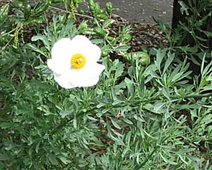The narrow, waxy, gray-green leaves of the Island Tree Poppy are attractive year round in mild climates. The shrub can grow up to 18’ tall and is covered with flowers in spring.
