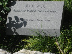 Just inside, a carved stone introduces you to the garden. The Chinese characters on the stone evoke associations with Daoism and a literary composition that tells the story of fisherman who accidentally finds a hidden world inside a little hillside cave.