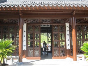 The Freshwater Pavilion is the teashop. The Chinese words for the pavilion literally mean “living water” or “water with life” and refer to a poem on tea in which the author scoops up “living water” from a deep river to make tea.