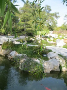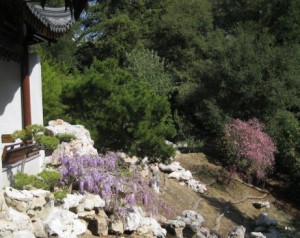 Inside the garden wall we can enjoy the elements of a typical Chinese garden; water, architecture, rocks, and plants.