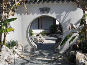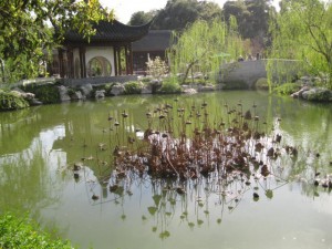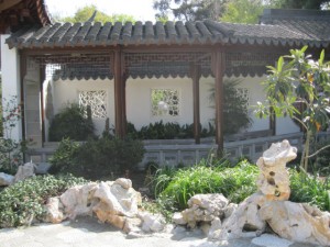 After visiting gardens in China we looked forward to visiting the Chinese garden at the Huntington. In preparation, I read the book published by the Huntington, Another World Lies Beyond, about the creation and construction of the garden and was impressed by the care with which the garden was designed and built. The garden was a bicultural effort and involved bringing materials as well as craftsmen from China. The Huntington Chinese garden is not a replication of any particular Chinese garden but draws from the tradition of the classical Chinese gardens such as those in Souzhou, China, with modifications introduced to accommodate both the differences in climate and the demands of building codes.