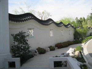 A serpentine wall very reminiscent of the wall in the Shanghai garden, runs along one side of the garden.