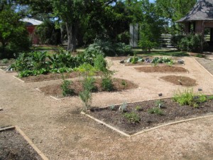 Behind the cold frames lies the Demonstration Garden where vegetables are grown with an assortment of other garden plants.