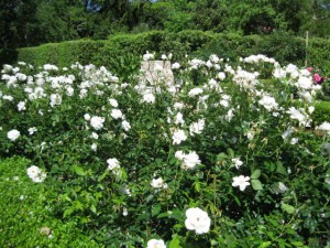 The Lord and Taylor Rose Garden contains a collection of both modern and antique roses, the modern roses arranged in parterres bordered by clipped Yaupon holly.