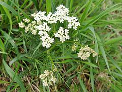 If you like to dig in the soil for treasures, grow pignut, dig up the tubers, cook them and enjoy a delicious treat that has a sweet taste something like chestnuts but with a hot after-taste like a radish. The tuberous root that gives the plant its name give rise to a hollow stem up to 3′ tall bearing dark green, deeply divided leaves. Small white flowers are carried in branched umbels in early to mid summer. Although the white flowers are pretty and the tuber edible, the plant is considered a weed in Europe where it is native.
