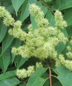 Tree of heaven is a deciduous tree native to northern China, Taiwan, northern Korea, and Tibet. It was introduced to the US in 1784 as an ornamental and naturalized wherever it was planted due its tolerance of difficult growing conditions, high seed production, and ability to sucker and resprout when cut. A very rapidly growing tree, it grows almost anywhere from urban parking lots to wood margins, crowding out native vegetation. In addition to its vigorous growth, its roots damage pavement, and its male flowers have a foul smell like dirty socks, so it is no longer valued in the US as an ornamental. It is considered invasive from Maine to Michigan, Nebraska, and Oregon, south to Florida and California. USDA Hardiness zones 4-8