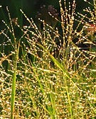 A native of eastern and central US, Indian grass is one of the components of the tall grass prairies and one most beautiful ornamental grasses. It is a warm weather perennial, with erect blue-green foliage that turns yellow ten burnt orange in the fall. Flowering spikes appear in late summer on stiff stems and are two to three feet above the foliage. Although Indian grass prefers rich, medium moist soil in full sun it tolerates wet conditions, some shade, and infertile soil.