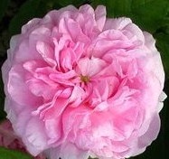 The Damask rose is actually a hybrid from Rosa gallica and Rosa moschata, and so botanically is known as Rosa x damascena. It was one of the first roses in Europe to bloom more than once and became a parent of other roses that we consider “old garden roses” such as Bourbon, hybrid perpetual, and Portland roses. Damask roses are divided into to groups: summer damasks that bloom only once and autumn damasks that bloom in summer and fall.