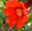The pomegranate (Punica granatum) is a member of the Lythraceae family that includes crape myrtle, loosestrife, and henna. It is a multi-stemmed deciduous shrub or small tree growing sixteen to twenty-six feet tall with spiny branches. The glossy dark green leaves, are narrow and one to three inches long. The bright red flowers are one inch in diameter and are borne singly or in clusters through out the summer. The fruits, produced in the fall, are two to four inches in diameter and ripen to yellow tinged with red. They contain from 200 to 1400 seeds each contained in a juicy, edible sac. Pomegranates are hardy in USDA zones 8-11 and like full sun and organically rich, dry to medium moist, well-drained soil.