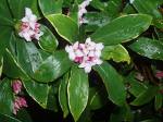 Daphne odora: This rounded, evergreen, 4 ft shrub is probably the most fragrant winter blooming plant. Blooming from February through March it looks handsome all year with its green or variegated foliage. The flowers are borne in clusters so that the buds and flowers are next to each other. Plant in light soil with very good drainage and no afternoon sun. Over watering this plant will kill it.
