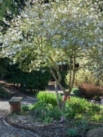 Japanese Rice Paper Plant (Edgeworthia chrysantha): Soft yellow fragrant flowers are borne on a large deciduous shrub. The bold bluish foliage is attractive all summer and the silver buds set in the late summer add interest to the fall and winter garden until they burst forth in bloom. This woodland plant prefers a well drained humus-rich soil in part shade but can tolerate sun.