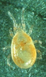 Predatory mite Neoseiulus fallacisThere are thousands of predatory mites in North America and they belong to several different arachnid families. The most important family is Phytoseiidae and the mites belonging to this family are known as phytosiid mites. They are common in the landscape and garden primarily eating pest mites such as the spider mite. Some of the phytosiid mites are specialist predators eating only one type of pest mite, while others feed on more than one species of mite depending on the abundance of the food supply. Still others are generalist predators and consume a variety of mite species as well as insects like thrips, whitefly nymphs, scale crawlers, leafhoppers, fungus gnats, and psyllids. These mites can survive on pollen when their preferred food is no longer available.