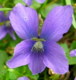 The common blue violet is a herbaceous perennial belonging the Violaceae family that also includes pansies. It is native to eastern US where it prefers moist soil but is drought tolerant when mature so adapts to a variety of habitats including ditches, roadsides, and railroad clearings as well as in fields, meadows lawns and garden beds. Plants grow best when temperatures are cool. They can be distinguished from sweet violet, a native of Europe and Asia, by their lack of fragrance. Both flowers and young leaves are edible and the latter is enjoyed by butterfly larvae, especially Fritillaries, as well as various mammals. The generic name Viola comes from the Latin name for sweet smelling flowers such as stock and wallflowers.