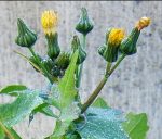 Description: Growing one to four feet tall, annual sowthistle and has a stout taproot and a hairless, hollow five angled stem that branches near the top and is dull green sometimes with a reddish purple tint. The thin soft alternate leaves are hairless, dull green on top, sometimes tinted reddish purple at the base, and are up to eight inches long but decrease in size as they ascend. They have deep triangular lobes with toothed margins ending with small, soft prickles and clasp the stem with claw-like basal lobes. Both the stem and leaves contain a milky sap. The flower heads appear from summer into fall in small terminal clusters and open during the morning, closing by noon. They are 3/4″ across and consist of numerous yellow ray flowers subtended by dull green, hairless, overlapping floral bracts. The fruit is a dark, ribbed, achene with a tuft of soft fluffy hairs that aids in wind dissemination. A single plant can produce 4,000 to 5,000 seeds that are viable for up to eight years or more. Plants spread by seed.