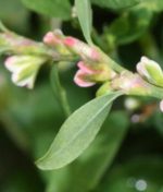 Description: This low growing weed has semi-erect wiry stems that grow four to sixteen inches high and hairless, short stalked leaves that are blue-green and oval but are variable. The joints of the stem are enclosed by a silvery, translucent, membranous sheath called an ochrea. Small apetalous flowers appear in the leaf axils from mid-summer to late fall and are green with white or pink margins. The fruit is a dark brown, three sided nut with a single seed that may be viable for up to fifty years but usually lasts no more than two. Plants spread by seed.