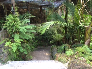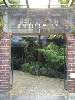 Entrance to the Fernery is through a gateway in the curved pergola in the courtyard between the two greenhouses.