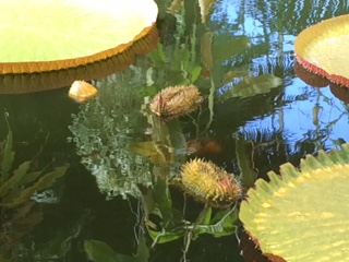 In the pond we could see the new Victoria water lily leaves coming to the surface to unfurl.