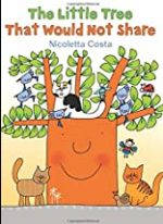 Nicoletta Costa’s book, The Little Tree That Would Not Share, tells the story of young tree living in a city that takes great delight in his new leaves as they appear in the spring but won’t share them with the birds, butterflies or cats that approach him. Fearful that the animals might cause his beautiful leaves to fall the little tree tells them to go away and the animals are miffed especially the cats. As autumn rolls around the leaves of the little tree turn yellow and then fall as winter approaches. Thinking he is sick, the little tree becomes distressed until a crow takes pity on him and explains the cycle of the seasons and that stronger and more beautiful leaves would sprout in the spring. Cheered, the little tree makes a promise and in spring invites all the animals to celebrate among his branches. Written for children 3-6 years old, the story is delightful and teaches a valuable lesson about sharing. The main text is written in a modest easy to read font while the comments of the animals are shown in bubbles. The illustrations are composed of simple shapes and bright colors on a flat plain which reflects the nature of the story. A charming book that can be enjoyed for its story line, illustrations, and/or moral.