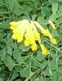 Also called yellow fumitory, this perennial is the mostly commonly grown Corydalis in the US but is native to the foothills of the southern Alps in Switzerland, Italy, and Yugoslavia where it grows on shady rocks and screes. The golden yellow flowers are ¾ inches long and carried in dense elongated racemes over a long bloom time beginning in May . The three to four times pinnate foliage is distinctly three-lobed and forms a neat mound. The plant spreads easily by seed and may pop up in unexpected places.