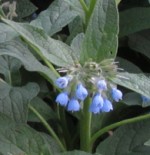 This coarse herbaceous perennial is native to the Caucasus Mountains where it grows in waste places, along roadsides, in scrub, and along streams. It is a member of the boarage family, Boraginaceae, that also includes Virginia bluebell, forget-me-nots, and heliotrope. Slender rhizomes with long thick roots form a rosette of leaves and then erect sparsely branched stems that become sprawling. The ovate to lanceolate leaves are grayish green and softly hairy. The basal leaves are up to eight inch long while the upper leaves are six inches long and attached to the stem for a short distance. The bell-shaped flowers are drooping, ¾ “ long, and are carried in terminal, arching, paired, scorpiod cymes in spring to early summer. They open pink aging to sky blue and the petals are considerably longer than the sepals. Plants grow quickly and can be invasive. The genus name, Symphytum, comes from two Greek words, symphyo meaning make to grow together, and phyton, meaning plant, and refers to the reputed healing properties of the genus.