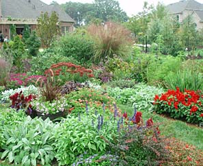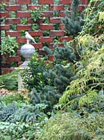 The garden is planted with small trees, shrubs, annuals and perennials with some garden ornaments placed here and there to provide scale and interest.
