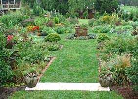 The formal garden had a ratty looking shrub hedge around it and many perennials, but I began early in May planting an abundance of annuals especially in the front of the beds.