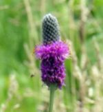 Purple prairie clover is a herbaceous perennial native to central North America from Ontario to Georgia west to Alberta and Arizona where it grows in prairies, savannas, and open woods. Plants grow 1-3″ tall and have multiple stems and pinnately compound dark green leaves with 3-7 narrow leaflets about 1″ long. The small purple flowers are produced on 1-2” cone-like spikes and are accented by golden anthers that extend beyond the petals. The flowers begin to open at the bottom of the cone and form a wreath that gradually moves upward resulting in a long bloom period that extends from mid-summer into fall. The flowers attract bees and the plant is a host plant for sulfur butterfly larva. The plant is anchored by a large taproot making it drought tolerant but difficult to transplant. USDA Hardiness Zones 3-8