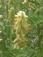 Also known as rattle weed, this herbaceous perennial is native to most of North America where it grows in a variety of habitats including woodlands, prairies, thickets, moist meadows, stream banks, abandoned fields and roadsides. Growing 1-4′ tall from a tap root with rhizomes, the plant has branching stems and pinnately compound leaves that are 5-9″ long and have 21-31 oblong leaflets 1.5″ long. In summer, 6″ long terminal racemes carry up to 75 greenish to cream colored flowers in whorls. Each pea-like flower is tubular, 3/4″ long, and is comprised of 5 petals. The oval seed pod is two chambered, 1/2″ long, and pointed at one end with the remnants of the style adding a tail-like appearance. Nectar provides food for bumblebees and honey bees while the foliage is a food source for wildlife such as wild turkeys, deer, rabbits, and small rodents. USDA Hardiness Zones 3-8