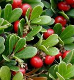 Bearberry is a fine textured evergreen ground cover that is native to northern parts of Europe, Asia and North America. In North America it can be found growing on dunes, outcroppings, lakeshores, and open woods from Labrador and British Columbia, south to Virginia, New Mexico and California. The leaves are simple and dark green, sometimes taking on a bronze or reddish tinge by fall. The plants reach grow up to 12” tall and slowly form dense attractive mats. In spring, bearberry features tiny, dropping, bell-shaped white to pink flowers that are followed by bright red berries in late summer. USDA Hardiness Zones 2-7