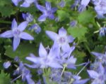 A native of southern Europe, Adriatic bellflower is a prostrate evergreen herbaceous perennial and a member of the the Campanulaceae family that also includes ladybells (Adenophera), balloon flower, and Lobelia. It has gray-green toothed leaves that are kidney shaped in the basal rosettes but heart shaped on the flowering stems. Clusters of 1-1 1/2″ star-like blue flowers with white eyes are produced in the leaf axils in spring and persist for 2-3 weeks. Adriatic bellflower is a good choice for rock and wall gardens, and the front of the border but is vigorous and may have to be restrained. the genus name, Campanula, comes from the Late Latin word campana meaning bell and refers to the shape of the flowers. The specific epithet, garganica, comes from the name of Mt. Garganica in Italy where the species was discovered in 1827.
