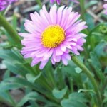 Alpine aster is a shot-lived herbaceous perennial native to Canada, US, and the mountains of Europe including the Alps and the Pyrenees. It is a member of the Asteraceae family that also includes daisies, sunflowers, and lettuce. The plant forms a basal clump of narrow 1 ½ to 2 inch long leaves that are gray-green in the spring but turn dark green in the summer. The daisy-like flowerheads are one to three inches across and have violet blue ray flowers surrounding yellow disc flowers. Each solitary flowerhead is carried on a sturdy stem clothed with a few sessile leaves from late spring to summer. Cultivars are available with pink, dark purple-black, near white, and blue flowerheads. A good choice for rockgardens. The genus name Aster comes from the Latin word aster meaning star and refers to the shape of the flower. The specific epithet alpinus comes from the Latin word meaning of the alps, referring to the mountainous habitat of the plant.