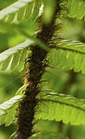 Alpine wood fern is a semi-evergreen or deciduous perennial fern native to the Himalayas, Hawaii, Mexico and Jamaica where it grows in woodland settings at high elevations. It has a massive rhizome and a wide vase-shape of handsome fronds that are bipinnatifid and bright gold-green when young before turning dark green with age. The color of the fronds is set off by the hair-like dark chocolate scales along the central ribs. The spore-producing structures (sori) have a kidney-shaped covering (indusium) and are arranged in one medial row along each side of the midribs of the lobes. An excellent choice for a shade or woodland garden, especially a small garden because of the relatively narrow width. The genus name Dryopteris comes from the Greeks words dryas meaning oak and pteris meaning fern a reference to the fact that some species are associated with oak woodlands. The specific epithet, wallichiana, is from the name of the Danish botanist, Nathaniel Wallich (1786-1854).