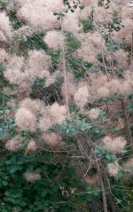 Bloom: Long hairs surrounding the panicles of inconspicuous flowers form pink to purplish pink plumes that create a smoky haze all over the tree in summer.