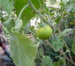 Known by many common names including thorn apple, bitter tomato, apple of Sodom, and bitterball, this tropical perennial is native to Sub-Saharan Africa and the Middle east, eastwards to India. It is a member of the nightshade family, Solanaceae, that also includes peppers, potatoes, and eggplant. Plants are erect or spreading, may be shrubs or small trees growing up to 6′ tall, occasionally more. They have pale yellow to brown, stout, recurved spines on the stem, branches, and sepals and velvet hairs on the leaves. The densely hairy, ovate leaves are .4-12″ long, have slightly wavy margins, and are gray-green on top with green-white below. Nodding or pendent flowers are borne from late fall into winter singly or in clusters in the leaf axils and have a fused yellow or white calyx and blue to purple bell- or wheel- shaped corolla surrounding 5 stamens. The 1′ wide flowers may be bisexual or functionally male, with the latter more numerous. The globose fruits are about .8″ across and are mottled or striped green, yellow, orange, or brown when ripe. They contain many lentil- to kidney-shaped pale yellow to brown seeds. Plants may become invasive. All parts of the plant are poisonous, but selected plants are used as food and medicinally for pain relief. The ancient Indians domesticated the plant into eggplant (Solanum melongena). The genus name, Solanum, is the classical Latin name for nightshade. The specific epithet, incanum, is the Latin word meaning hoary and refers to the white hairs on the plant, especially the leaves and stem.