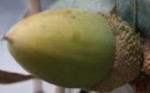 Also known as mountain oak and iron oak, California blue oak is found only in California where it grows on dry slopes of the interior hills surrounding the Central Valley. It is a long-lived deciduous tree and a member of the oak family, Fagaceae, that also includes beeches and chestnuts. The tree is often picturesque tree with its short spreading crocked branches and high rounded canopy. The light gray bark is checkered into scales and the simple, alternate leaves are bluish-green, one to three inches long, and irregularly lobed to entire. Usually have wavy margins and are somewhat rigid. Inconspicuous male and female flowers appear on the same tree in spring., the male flowers in drooping yellow-green catkins, the females often solitary in leaf axils of the current year. The female flowers give way in the fall to light green acorns darkening to brown with a shallow cup, ¼ to 1/3 as long as the nut. Blue oaks thrive in difficult sites with high heat and dry soil and do best when not pampered.