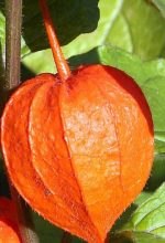 Also called bladder cherry and strawberry ground cherry, this herbaceous perennial is native to southern Europe and parts of Asia. It is a member of the nightshade family, Solonaceae, that also includes petunia, tomato and tobacco. Plants grow 1-2′ tall from a rhizomatous root system and have opposite arrow-shaped leaves that are spirally arranged and up to 5″ long. The 1″ wide flowers have a 5 lobed white corolla surrounding yellow stamens and are carried in the axils of the upper leaves in summer. The edible but rarely eaten fruit is small and cherry-like and is surrounded by a papery green husk up to 2″ long that turns bright orange in late summer. Plants are grown for these attractive lantern like fruit coverings that are beautiful in both live and dried arrangements. Chinese lantern selfseeds and spreads so aggressively by rhizomes that it can become invasive and is not suitable for the border. The genus name, Physalis, comes from the Greek word physa meaning bladder and refers to the inflated husk. The specific epithet, alkekengi, comes from an Arabic word meaning bladder cherry.