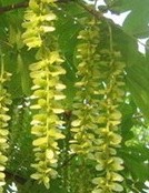 Chinese wingnut is a deciduous tree native to Southeast China where it grows in forests on mountain slopes or riverbanks. It is in the walnut family, Juglandaceae, that also includes pecan and hickory. The trees are usually multiple-trunked with branches low to the ground, a spreading habit, and dense rounded canopy. The leaves are pinnately compound, six to fifteen inches long, and composed of eleven to twenty-three lanceolate leaflets two to four inches long, shiny dark green, and with serrated margins. In late spring non-showy light green male and female flowers appear on the same tree in catkins seven inches and twenty inches long respectively. In early summer the female catkins produce two-winged fruits that are ornamentally attractive, mature to brown, and may remain on the tree until winter. Chinese walnut is very fast growing, has a suckering habit and shallow aggressive roots that make the tree unsuitable for lawns or sites near patios, sidewalks, or driveways. Although a good shade tree, it is more suited to large planting than a home garden. The genus name, Pterocarya, comes from the Greek words, pteron, meaning winged, and karyon, meaning nut. The specific epithet comes from the Greed words stenos meaning narrow, and ptero meaning winged.