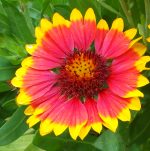 Common blanket flower is a herbaceous perennial native to northwestern and north central US where it grows in meadows. It is a member of the aster family, Asteraceae, that also includes daisy, yarrow and lettuce. Plants grow 1-3′ tall and have hairy, branched stems carrying lanceolate leaves that are densely hairy, up to 6″ long and are clustered at the base. From late spring to fall solitary flowerheads appear at the end of long stalks. They are 1.5-3″ across and have a center of purplish red disc flowers surrounded by 6-18 yellow ray flowers that are 3 lobed at the tip and have a red base. Each flowerhead is subtended by pointed, lanceolate, hairy bracts. The flowerheads attract butterflies and give way to seedheads that attract birds. Common blanket flower is a good choice for borders, butterfly, wildlife, native plant, and prairie gardens where their long bloom time can add abundant color for months. The genus name, Gaillardia, honors Gaillard de Charentonneau, a French magistrate and enthusiastic botanist. The specific epithet, aristata, comes from the Latin word arista that means bristle, and refers to the hairs on the leaves, stem, and/or fruit.