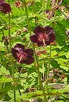 Also called morning widow or black widow, dusky cranesbill is a herbaceous perennial native to Europe. It belongs to the geranium family (Geraniaceae) and is part of the group called hardy geraniums to distinguish them from pelargoniums, the common container plant grown as an annual in most of the US. Dusky cranesbill is clump-forming and has palmate shaped leaves often marked with dark blotches as they mature. The dark purple flowers are outward-facing, and are 3/4 inch across . They appear well above the foliage on slender stems in late spring and early summer. Although the species tends to get tall and weedy, some promising cultivars are available. Good choice for dry shade under trees.