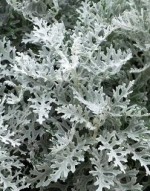 Dusty miller is a half-hardy perennial native to the Mediterranean area and a member of the aster family, Asteraceae, that also includes daisy, yarrow, and lettuce. It grows 12-24″ tall and has silver-gray woolly leaves up to 6″ long that are lobed or deeply incised so as to give a lacy appearance that sets off the appearance of other plants to advantage. In summer, small mustard yellow daisy-like flowerheads appear beginning in the second year. Considered a subshrub, dusty miller is usually grown as an annual in cool areas but often returns in USDA Zone 7 and warmer. Dusty miller likes warm temperatures and a dry climate but it also does very well in the heat and humidity. It is a good container plant but is most often seen as a edging plant and has been over used at times. The foliage as useful in a vase arrangement as it is in the garden and at Christmas time looks beautiful combined fresh or dried with red roses. The genus name, Senecio, comes from the Latin word senes meaning old man and refers to the hoary pappus of the plant. The specific epithet, cineraria, is from the Latin word cinerarius meaning pertaining to ashes and refers to the ash-colored down on the leaves.