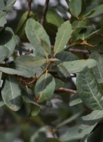 Engelmann oak, also known as mesa oak and Pasadena oak, is rare tree native to the open woods and chaparral in the foothills of Southern California and northern Baha California. It is a member of the oak family, Fagaceae, that also includes beeches and chestnuts. The single trunked trees have sparsely branched limbs and brown to light gray to whitish bark. The leathery blue-green leaves are oval with shallow lobes, 1-2.5 inches long, and may be wavy. They are usually evergreen but may be deciduous in hot dry summers. The small yellow flowers are produced in male and female catkins in the same tree and the female flowers give way to acorns half to one inch long. Trees are valued for their handsome foliage and the shade they can provide. Although the wood is strong it warps and cracks when dried so is not a good source of timber.